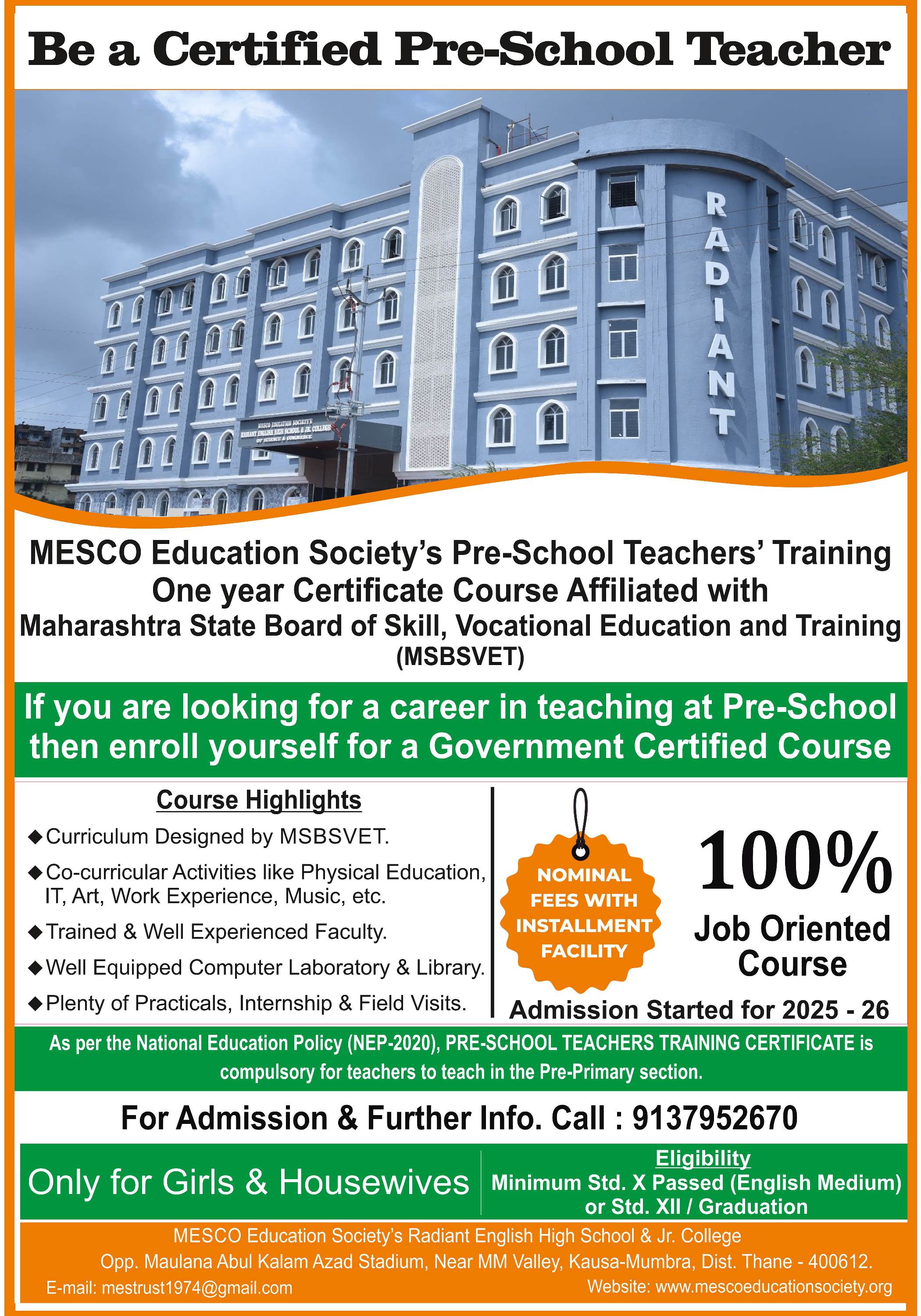 Crescent Degree College Plan | MESCO Ex-Students Directory | MESCO Trust & MES: Transforming Lives | | ECCED Handbill 2024 | | Principal Advertisement for Radiant School | | MESCO Zakat Appeal | | MKCL Authorized Learning Centre | | 80G Benefits | | Obituary | | Usage of Interest Money | | Nursery Sponsorship Appeal | | MESCO Old Newspaper Scheme | | CSR Initiative | | Payroll Appeal | | Radio One (94.3) Interview on MESCO |